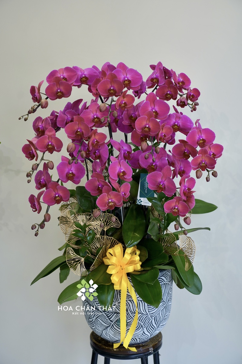 Lan hồ điệp tím địa chủ 10 cành mang sắc tím sang trọng, biểu trưng cho quyền uy và phú quý. Chậu hoa cân đối, bền dáng, phù hợp làm quà tặng đối tác, người lớn tuổi hoặc trang trí không gian trang nghiêm.