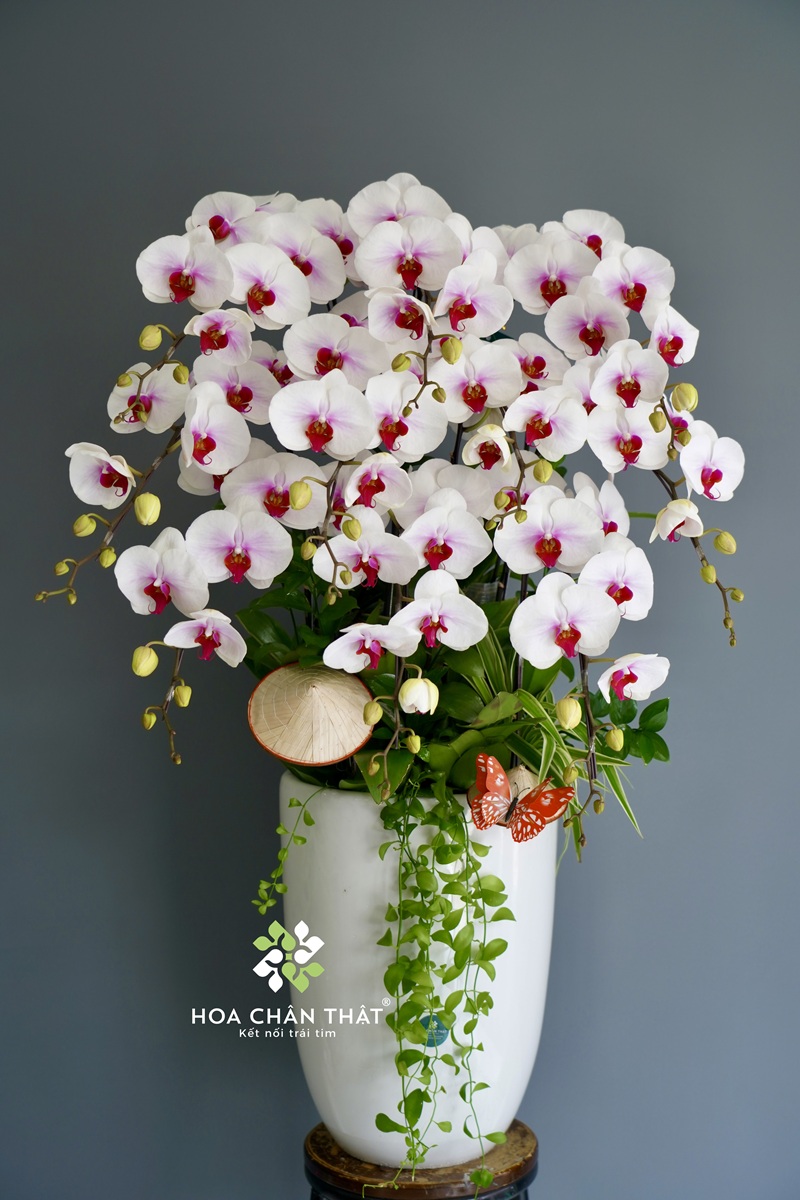Chậu Lan Hồ Điệp 10 Cành Trắng Nhụy Đỏ Hồng – Phú Quý Trang Nhã
