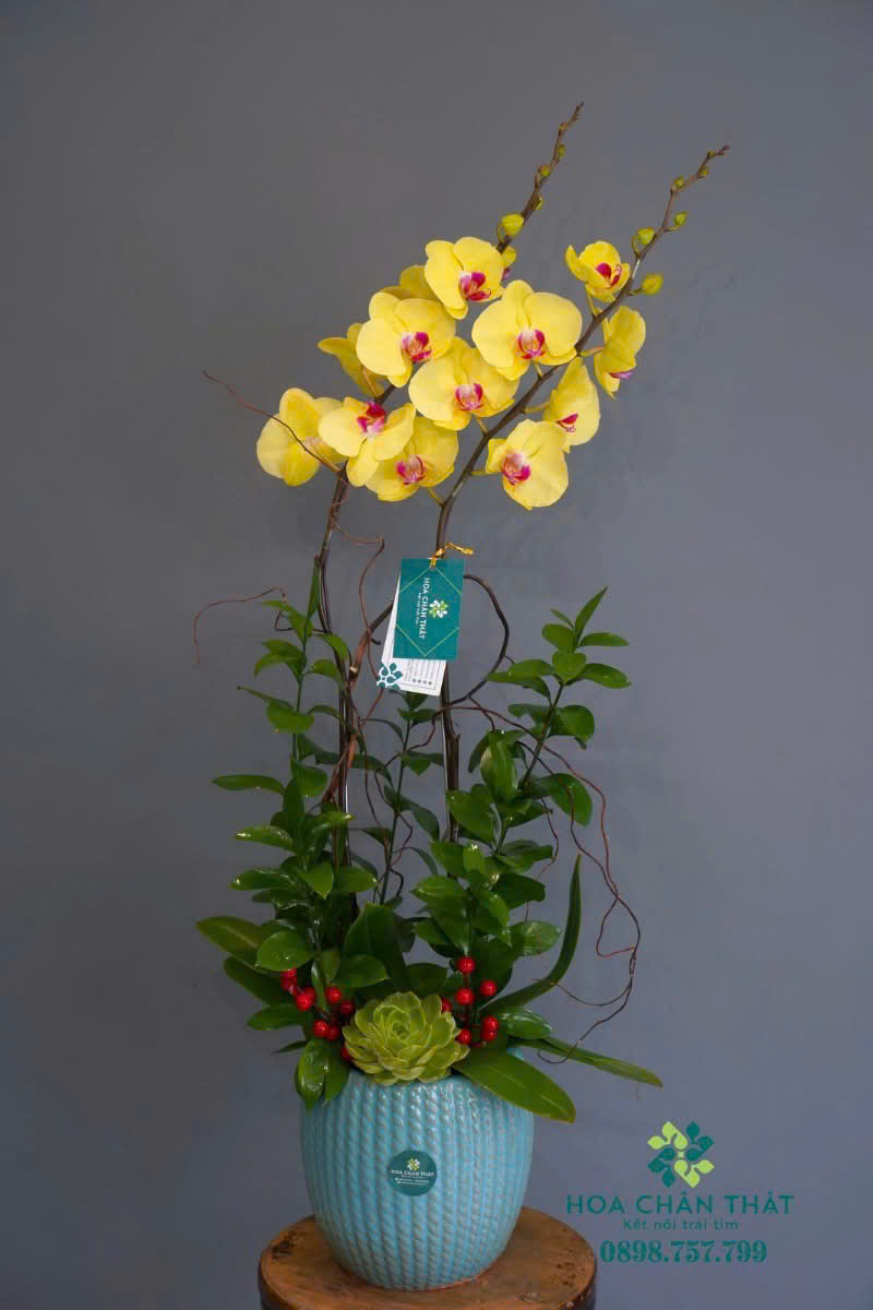 Chậu Lan Hồ Điệp 2 Cành Vàng – Chậu Xanh Ngọc Cao Cấp