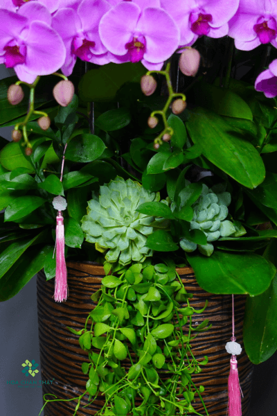 Chậu lan hồ điệp 20 cành Hồng Tím Vượng Khang là biểu tượng của tình yêu, sự thịnh vượng và phú quý. Tông hồng pha tím tạo cảm giác sang trọng và thanh tao, được cắm trong chậu cao với bố cục cân đối, tỏa sáng ở mọi không gian. Đây là món quà hoàn hảo dành cho dịp khai trương, lễ Tết, hoặc trang trí nội thất mang phong cách tinh tế và vượng khí.
