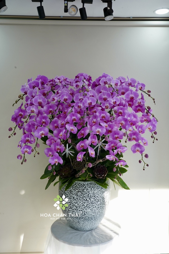 Lan hồ điệp 20 cành hồng mang vẻ đẹp dịu dàng nhưng vẫn rất sang trọng. Chậu hoa dáng lớn, nở đều, thích hợp làm quà tặng doanh nghiệp, trang trí sảnh hoặc không gian tiếp khách cao cấp.