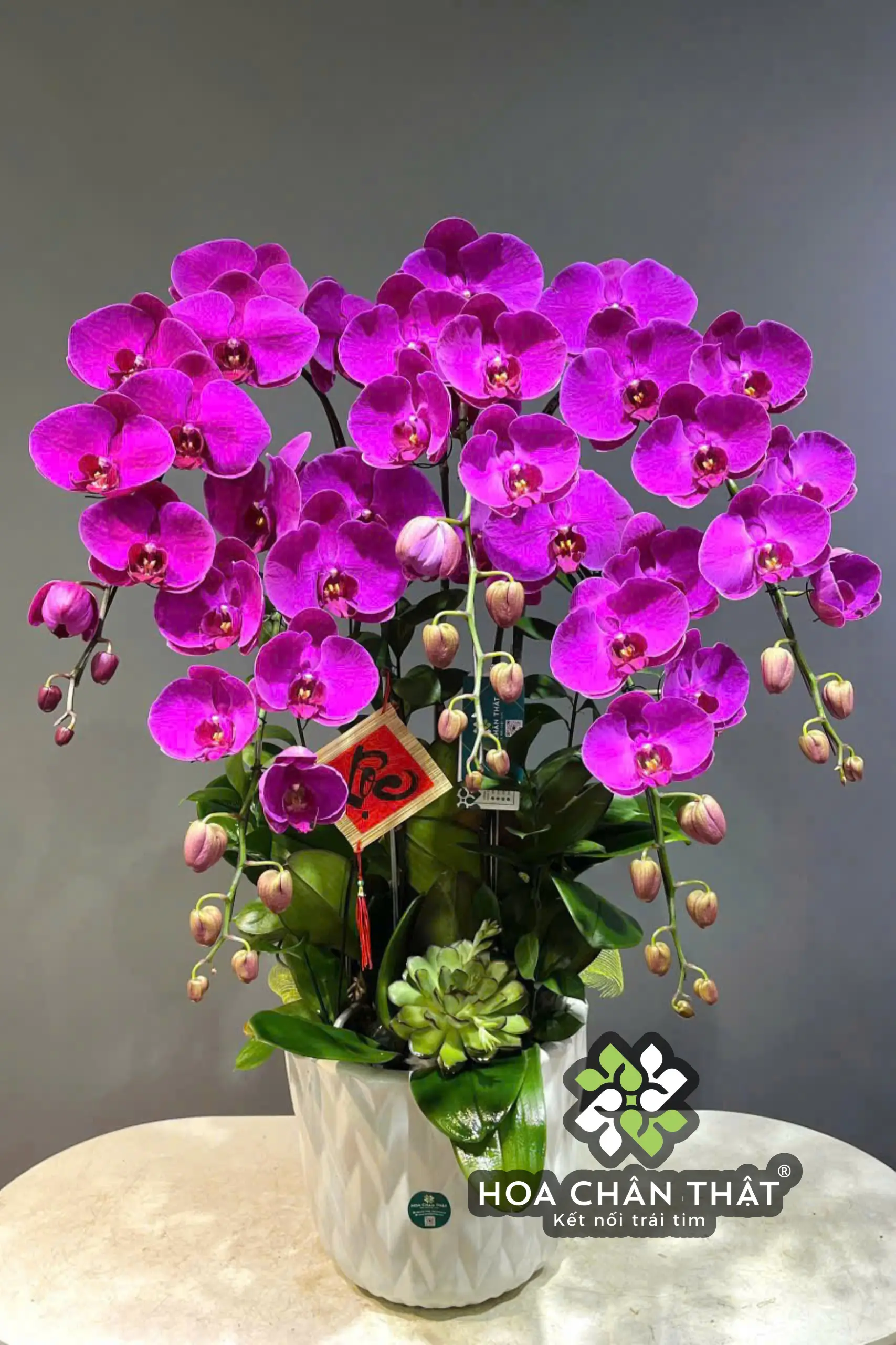 Chậu Lan Hồ Điệp 5 Cành Tím Địa Chủ – Phú Quý Cát Tường