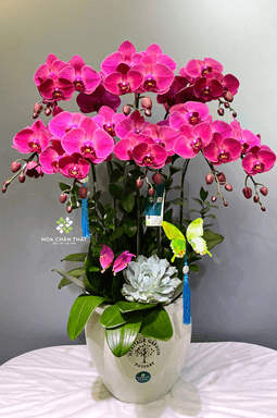 - Với vẻ ngoài bề thế và mang tính thẩm mỹ cao, Chậu lan hồ điệp 9 cành là sự lựa chọn đẳng cấp để trưng bày tại phòng khách biệt thự, sảnh chờ khách sạn hoặc làm quà tặng cao cấp cho đối tác, lãnh đạo trong các dịp kỷ niệm quan trọng.