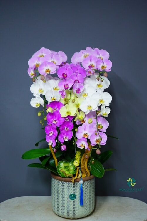 - Với vẻ ngoài bề thế và mang tính thẩm mỹ cao, Chậu lan hồ điệp 9 cành là sự lựa chọn đẳng cấp để trưng bày tại phòng khách biệt thự, sảnh chờ khách sạn hoặc làm quà tặng cao cấp cho đối tác, lãnh đạo trong các dịp kỷ niệm quan trọng.