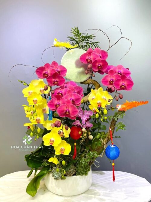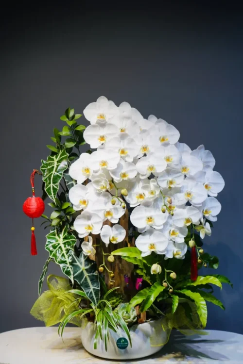 - Với vẻ ngoài bề thế và mang tính thẩm mỹ cao, Chậu lan hồ điệp 9 cành là sự lựa chọn đẳng cấp để trưng bày tại phòng khách biệt thự, sảnh chờ khách sạn hoặc làm quà tặng cao cấp cho đối tác, lãnh đạo trong các dịp kỷ niệm quan trọng.