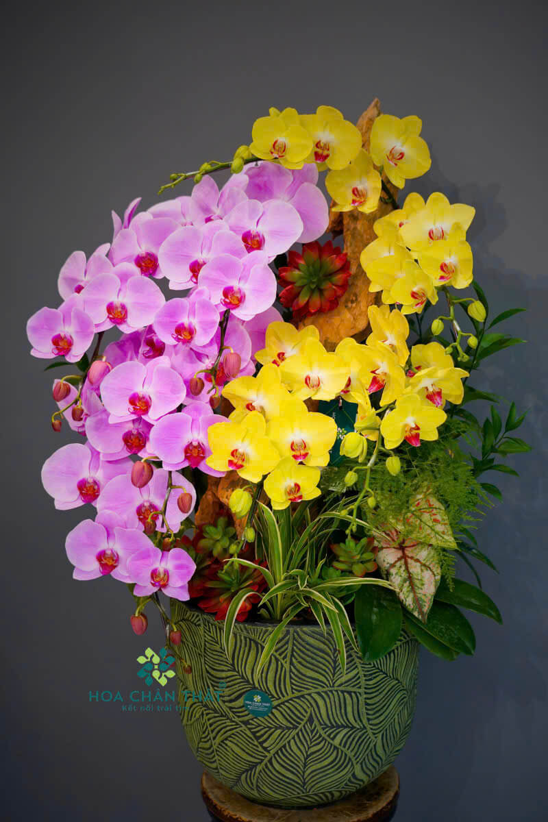 Chậu Lan Hồ Điệp 9 Cành – Tím Vàng Giao Hòa