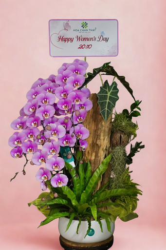 Chậu lan hồ điệp ghép lũa 5 cành Hồng Vân Quý Phát mang đến vẻ đẹp dịu dàng và sang trọng, kết hợp sắc hồng tươi thắm trên nền lũa tự nhiên tinh tế. Mỗi cành hoa nở rộ tượng trưng cho may mắn, thịnh vượng và tình yêu bền lâu. Chậu lan là món quà ý nghĩa dành tặng người thân, đối tác hoặc trang trí không gian sống, giúp lan tỏa năng lượng tích cực và thu hút tài lộc.