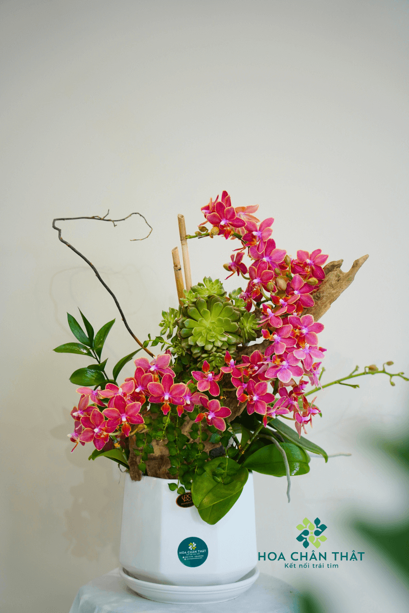 Chậu Lan Hồ Điệp Ghép Lũa 6 Cành – Song Vượng Gốc Đôi