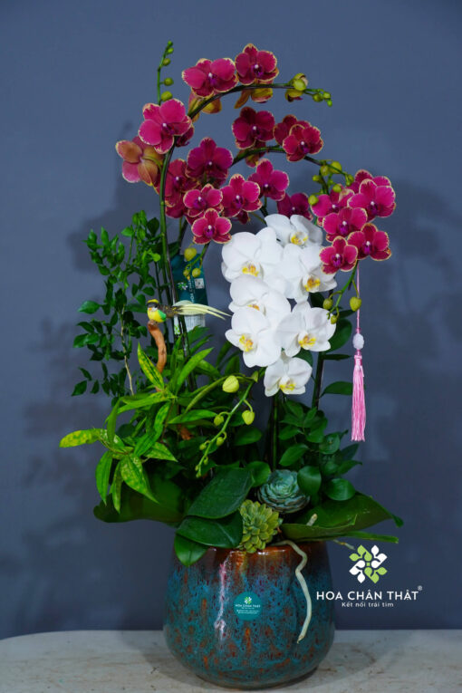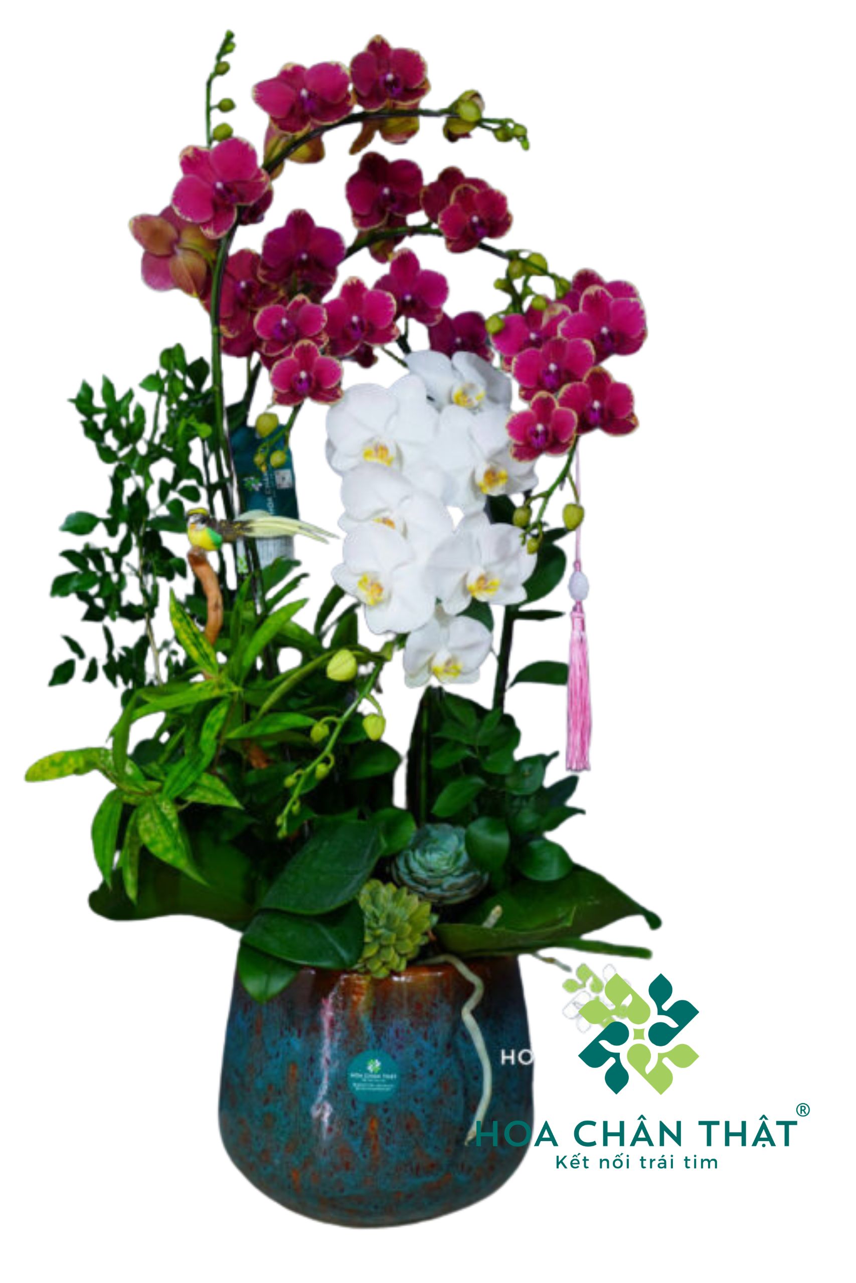Chậu Lan Hồ Điệp “Lộc Ngọc” là biểu tượng của may mắn, phú quý và khởi đầu hanh thông, mang đến năng lượng tươi mới và tràn đầy sinh khí cho không gian sống. Sắc hoa trắng hồng mềm mại được phối khéo léo trong chậu gốm men ngọc cao cấp, tạo nên vẻ đẹp thanh thoát, sang trọng và tinh tế.