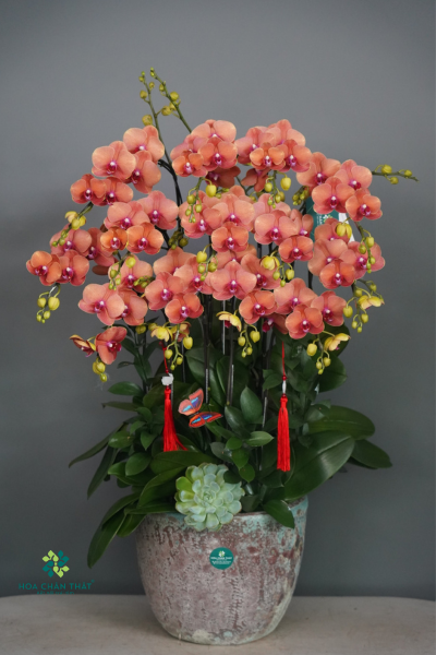 Chậu Lan Hồ Điệp Cam Gốc Đôi 12 Cành – Hân Hoan