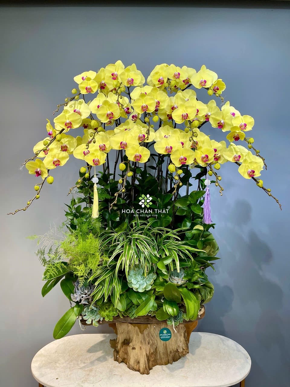 - Màu vàng tượng trưng cho hoàng kim, tài lộc và sự sung túc. 15 cành lan vàng rực rỡ như một lời chúc cho gia chủ về một sự nghiệp hanh thông, tiền tài đổ về như nước.