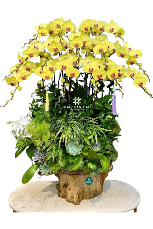 Máng Lan Hồ Điệp Ghép Lũa 15 Cành – Sắc Vàng Thịnh Vượng, khi 15 cành lan vàng rực rỡ được khéo léo tạo hình trên một máng gỗ lũa tự nhiên, giá trị của nó không còn dừng lại ở một chậu hoa thông thường, mà đã trở thành một kiệt tác đầy nghệ thuật.